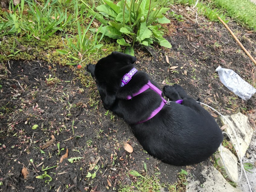 IMG_3379 Published June 7, 2018 at 4032 × 3024 in Our 2nd week, April 20 – 26, 2018: 9 weeks old Chewing on the weeds